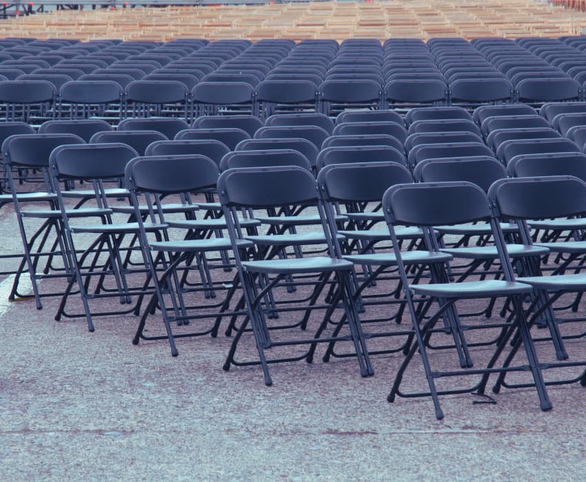 Folding chairs and folding tables are chosen for ease and function. They support quick setup, simple storage, and reliable use in spaces where practicality matters more than appearance.