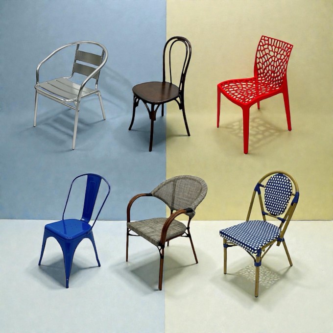 Choose from durable aluminium and plastic materials, elegant rattan, colourful resin, and the popular heavy metal Tolix chairs. Each style is crafted to meet the unique needs of your space, providing comfort and aesthetic appeal.