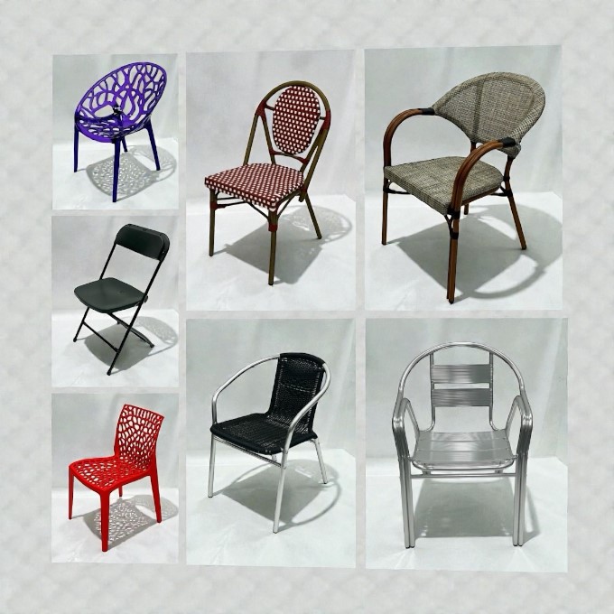Metal Chairs: These are available in plain aluminium, steel, rattan, and in a selection of colours.