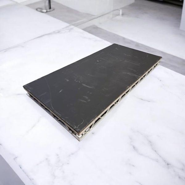 Ex Hire 8ft x 4ft BE Tour Deck Stage Deck with an aluminium ladder frame side profile and an 18mm plywood finished top with a black coating.